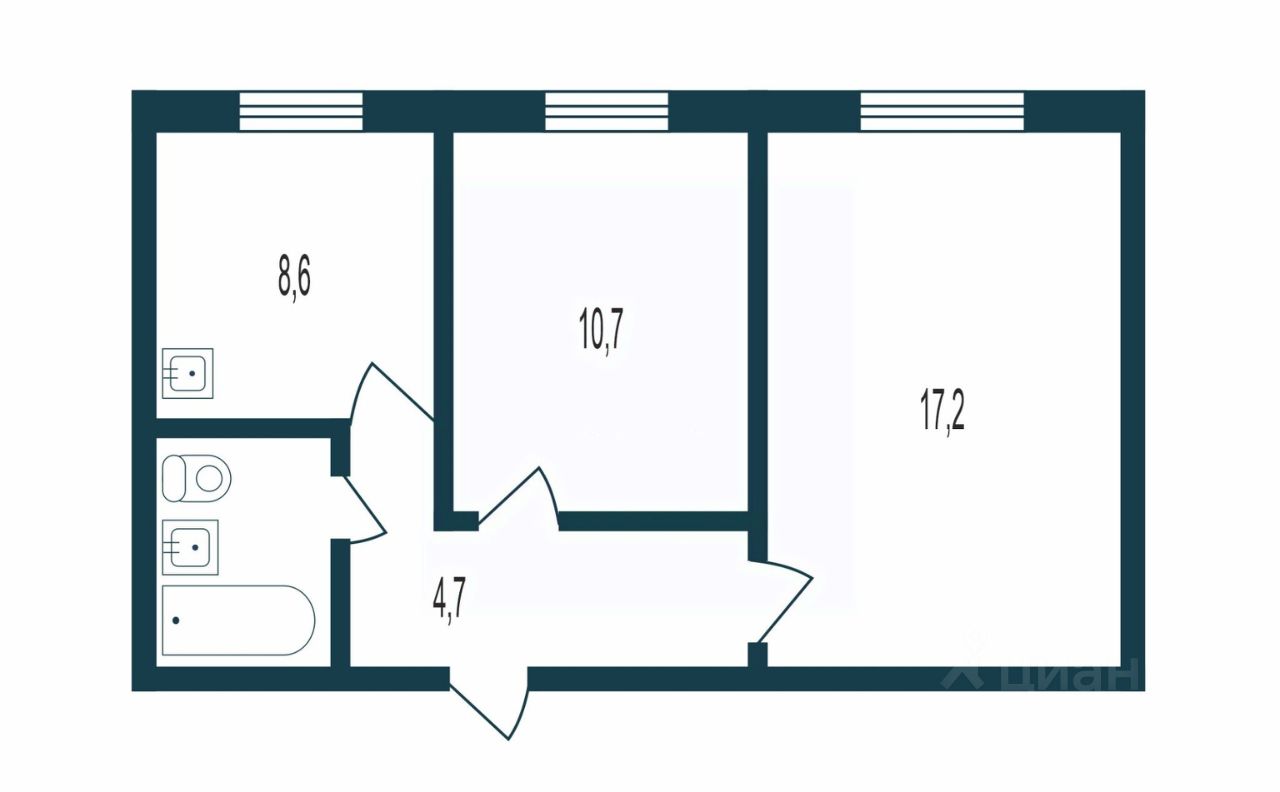 B продаже 2-к квартира с изолированными комнатами.