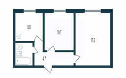 Увеличенная площадь кухни = 8,6 м2 (+2,3 м2 за счет реконструкции шкафа).
