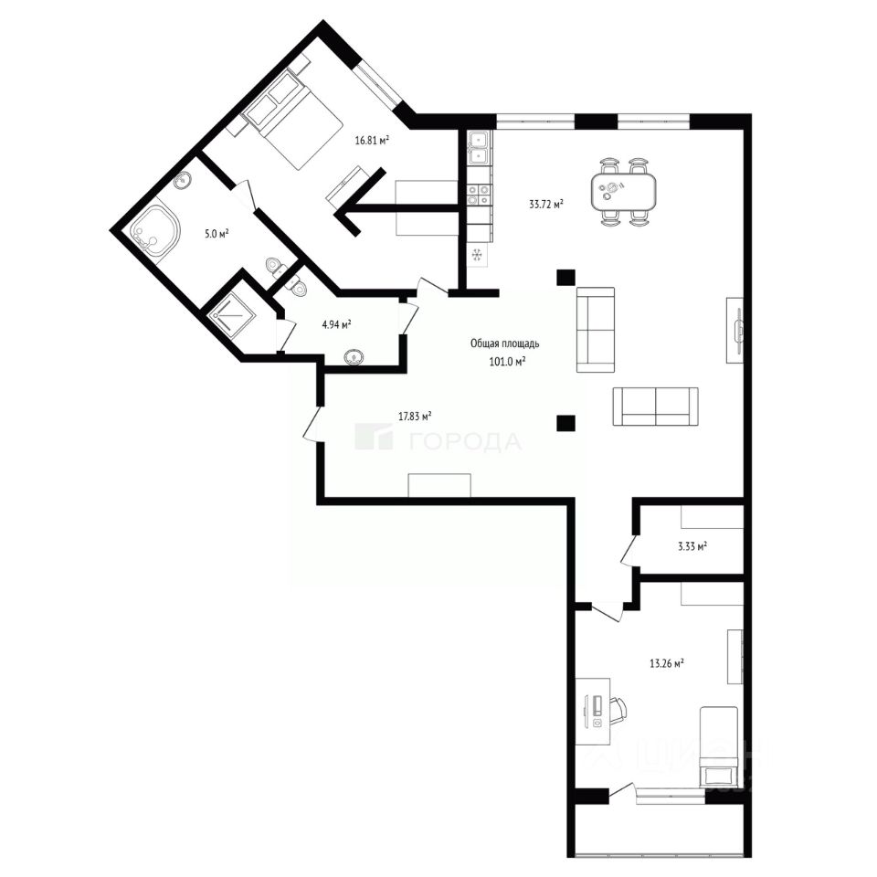 Функциональность: Продуманная система хранения (встроенные шкафы и ниши).