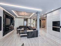 Инженерные системы: переделанная электропроводка (медь), новые батареи, кондиционеры во всех комнатах, теплые полы, многоуровневые потолки.
