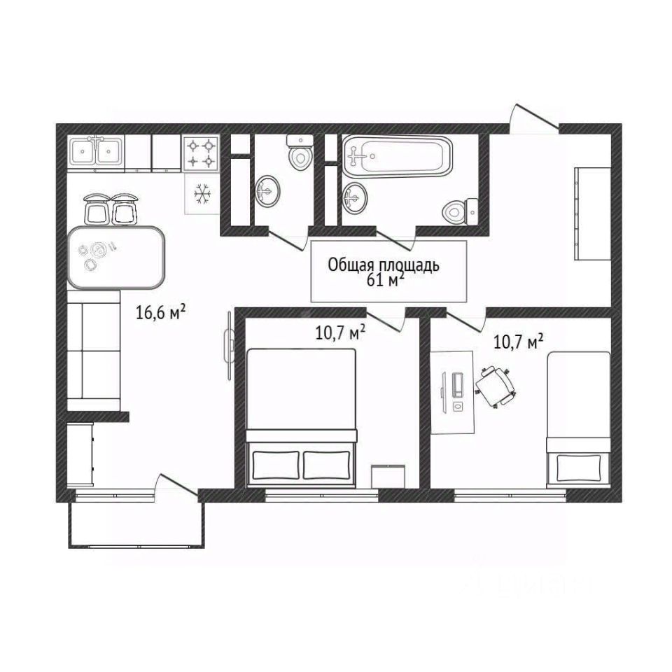 Продается современная трехкомнатная квартира площадью 61 кв.м. на 7 этаже кирпичного дома 2019 года постройки. Объект находится в отличном состоянии со свежим ремонтом в светлой нейтральной гамме и полностью готов к заселению. Ключевое преимущество — продуманная планировка с просторной кухней-гостиной 20.4 кв.м. и двумя раздельными санузлами, что идеально для семьи. Кухня оборудована гарнитуром со встроенной техникой, включая посудомоечную машину и духовой шкаф. В санузлах установлены гигиенический душ, стиральная машина с возможностью установки сушильной колонны и глубокая чугунная ванна. В квартире присутствует вся необходимая мебель, включая качественные кровати с ортопедическими матрасами и диваны-трансформеры в гостиной и детской, а также многочисленные системы хранения: шкафы-купе в спальнях, комоды и вместительный шкаф в прихожей. Дополнительный комфорт обеспечивают кондиционер в гостиной и возможность установки водонагревателя.