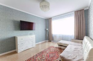 Квартира может похвастаться евроремонтом, создающим приятную атмосферу комфорта и уюта. Ремонт выполнен из высококачественных материалов в 2018 году. Покрытие пола в комнатах натуральный пробковый материал. Жилая площадь составляет 38,5 квадратных метров, а кухня занимает 10,7 квадратных метров, предоставляя достаточно места как для приготовления пищи, так и для семейных ужинов. Также имеется раздельный санузел и балкон, откуда открывается вид на тихий и зелёный двор. Окна квартиры расположены на две стороны, что позволяет хорошо проветривать помещение в жаркую погоду.