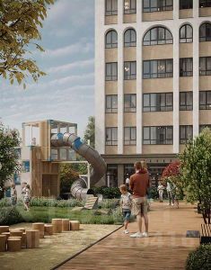 Квартал расположен в динамично развивающемся Октябрьском раионе с готовой транспортнои инфраструктурои и всем необходимым для комфортнои жизни.