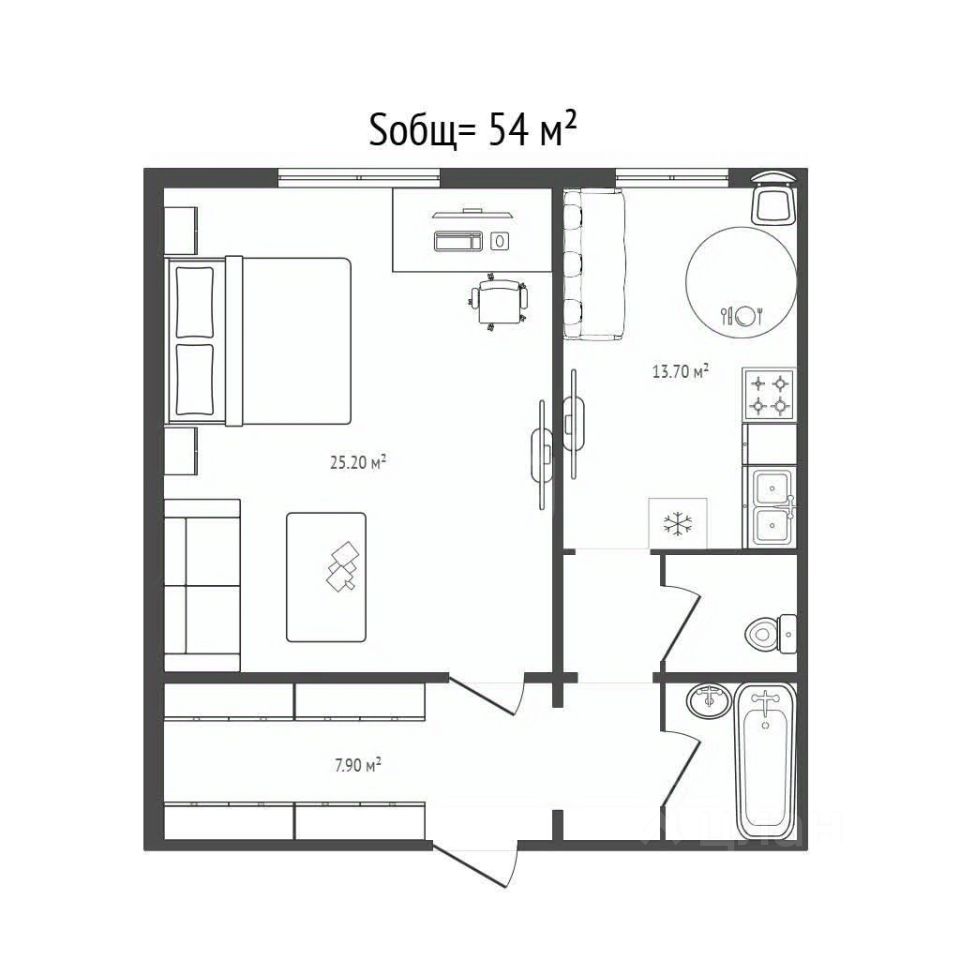 Продается однокомнатная квартира 54 м² на 10 этаже 10-этажного панельного дома 2010 года постройки. Жилая площадь - 25 м². Площадь 14 м². Высота - 2,8.