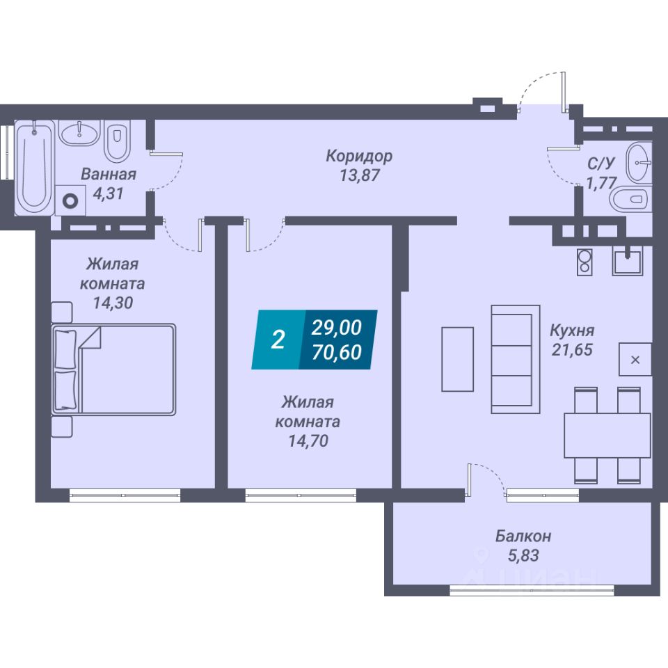 Общая площадь70,6 м²
