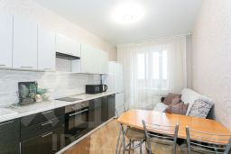 На кухне встроенный современный гарнитур и техника