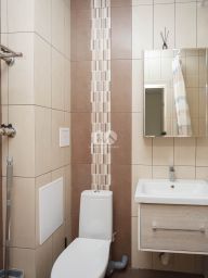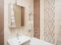 .В ванной комнате совмещенный санузел с качественной сантехникой и стильной отделкой.