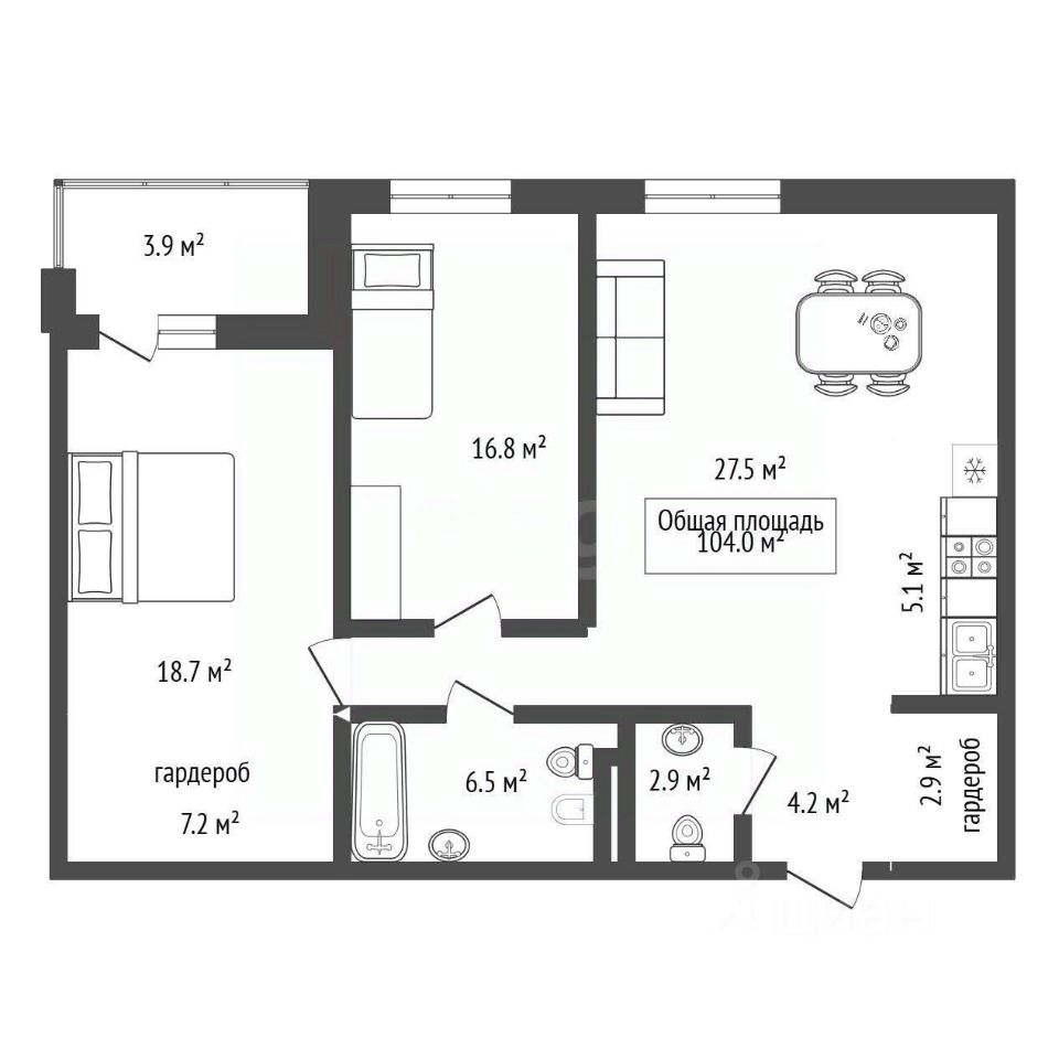 Просторная 3-я квартира площадью 104 кв. м в жилом комплексе "Переулок Бульварный" предлагает готовое комфортное проживание высокого уровня.