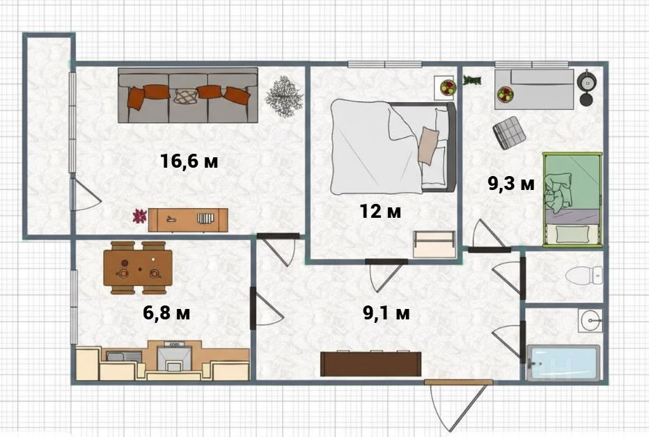 В квартире подготовлена к проживанию комната, в которой можно проживать, пока вы будете заниматься обновлением остальных помещений.