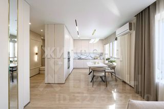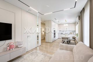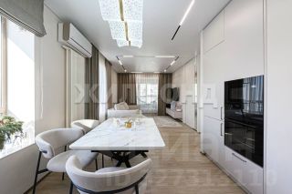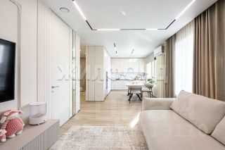 Квартира полностью укомплектована дизайнерской мебелью и техникой. Над проектом работал известный дизайнер под ключ, поэтому в квартире продумано все. Мебель из гипоаллергенных материалов с качественной фурнитурой, зоны света регулируются отдельно. Отделка выполнена в нейтральных для нервной системы тонах. Кухонная зона оснащена посудомоечной машиной и духовым шкафом. Много скрытых мест хранения на кухне, спальной комнате и зоне прихожей. В ванной комнате есть скрытые полки в душевой кабине, также стиральная машинка и сушка, бойлер для раздачи горячей воды в случае плановых отключений.