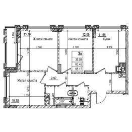 Продаётся 2-комнатная квартира в строящемся доме (Блок-секция 3.3), срок сдачи: III-кв. 2027, общей площадью 63.4 кв.м., на 1 этаже. Новый жилой комплекс у берега реки.