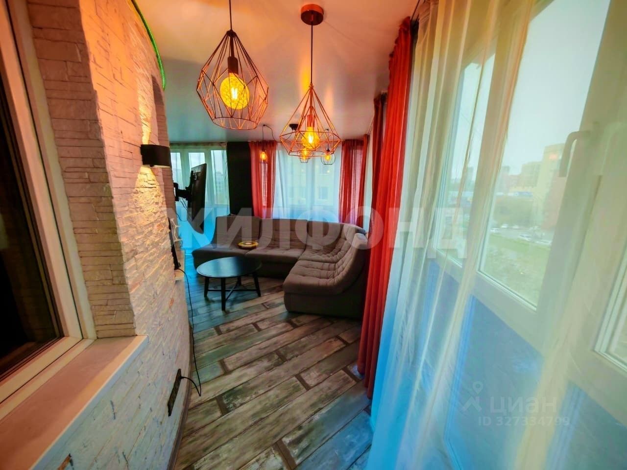Главная фишка квартиры это большой балкон в 23 кв.м. за счет утепления и отопления превращён во вторую комнату-гостиную, французские панорамные окна в пол, предоставляет отличный функционал для проведения досуга, дополняется стильным угловым раскладным диваном, плазменным телевизором и кондиционером.