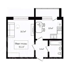 Арт. 131324590 Продается однокомнатная квартира S=32.2 м.кв. по ЕГРН, просторная кухня S=8.9 м.кв. и большая застекленная лоджия.