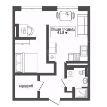 • Общая площадь: 43 м²