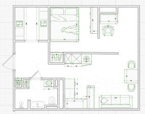 • Выполнено зонирование квартиры: кладовка, кухня-гостиная, рабочая зона и спальня