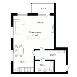 Квартира расположена на 16 этаже 16-этажного кирпично-монолитного дома, построенного в 2023 году. Из окон открывается вид на улицу. Общая площадь квартиры составляет 63,1 кв. м, жилая — 35 кв. м, площадь кухни — 11,2 кв. м. Высота потолков — 2,8 м.