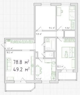 Все комнаты изолированные, окна выходят на две стороны, а это значит весь день в квартире светло, очень удобно, что зона кухни и гостиной отделена от зоны спален, спальни расположены в дальней части квартиры;