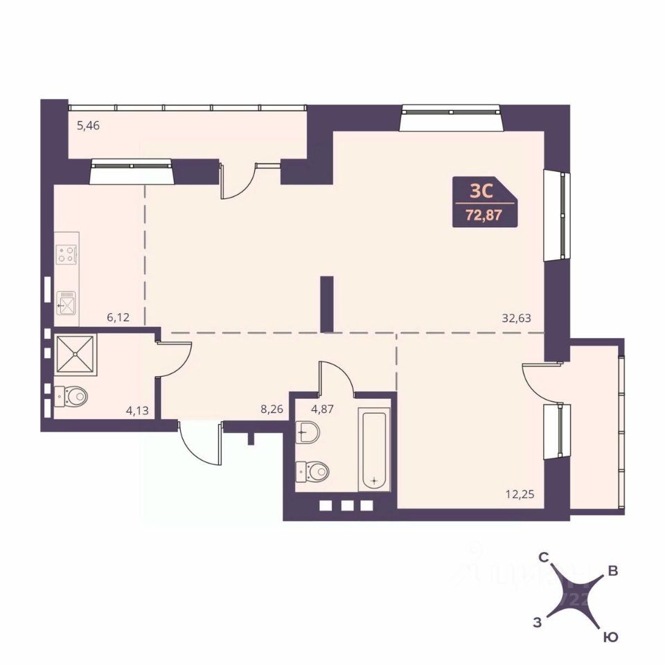 Продаётся 3-комнатная квартира в строящемся доме (Дом 104), срок сдачи: I-кв. 2026, общей площадью 72.87 кв.м., на 2 этаже. Семейный дом "FOR STARS" - новый проект от Специализированного застройщика "Редфилд", расположенный в Октябрьском районе Новосибирска на ул. Ленинградская.
