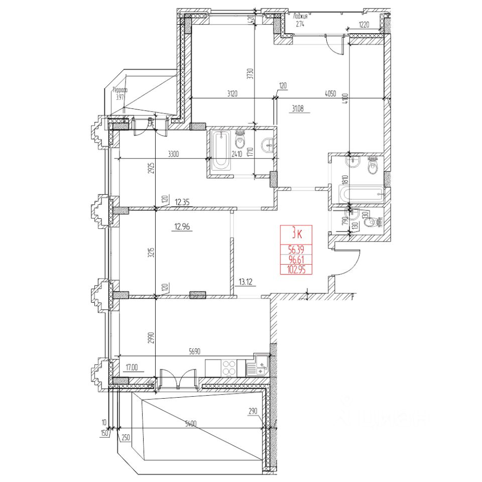 Продаётся 3-комнатная квартира в строящемся доме (Блок-секция 4.1), срок сдачи: III-кв. 2026, общей площадью 96.6 кв.м., на 18 этаже. Новый жилой комплекс у берега реки.