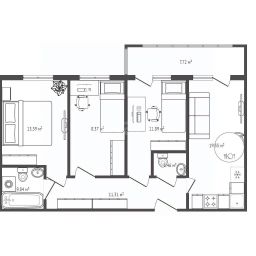 Ключевым преимуществом объекта является планировка, каких уже нет у застройщика даже в строящемся доме, позволяющая создать индивидуальное пространство под задачи владельца.Три мокрых точки позволят кухонную зону разместить в любой из комнат согласно личным предпочтениям. Особенностью является большой остекленный балкон, выходящий на две комнаты, что увеличивает полезную площадь и освещенность. Квартира находится в состоянии предчистовой отделки с выполненной разводкой инженерных сетей, все внутренние перегородки возведены из кирпича, что обеспечивает высокую звукоизоляцию и долговечность. Есть машино-место в подземном парковочном комплексе. Общественные зоны выполнены на высоком уровне: современное лобби первого этажа с комфортной зоной ожидания. Расположение характеризуется развитой инфраструктурой: в шаговой доступности находятся Центр образования 82, гимназия 15 и несколько детских садов. Станция метро расположена в 10 минутах неспешной ходьбы, что обеспечивает отличную транспортную доступность. Объект представляет собой рациональный выбор для тех, кто ценит потенциал свободной планировки, качественные материалы строительства и выгодное расположение.