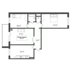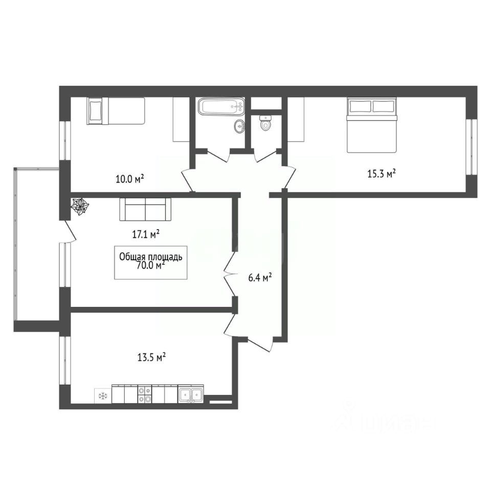 Общая площадь 70 метров, функциональная кухня 14 метров, высота потолков 2.7 метра, лоджия. Комнаты изолированные, санузел раздельный.