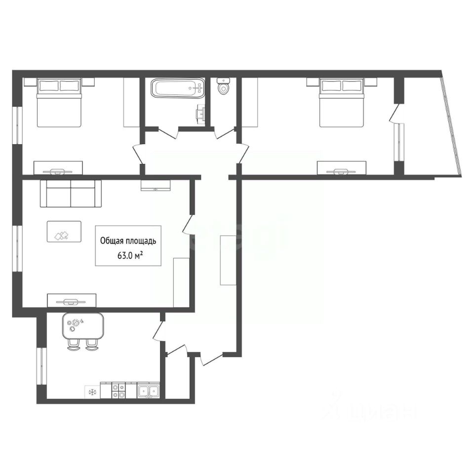 * Общая площадь — 62,6 м²