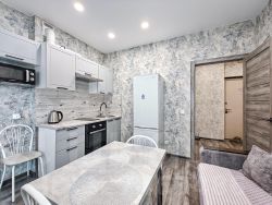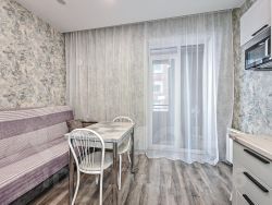 Просторная гостиная с выходом на застекленную лоджию, откуда открывается вид на улицу и реку Обь. Комнаты изолированные, что обеспечивает комфорт и приватность. Кухня оборудована всей необходимой техникой, включая холодильник и стиральную машину.