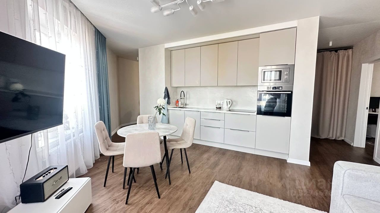 В квартире выполнен современный ремонт с использованием качественных материалов, основная часть мебели и бытовой техники остается новому владельцу, что позволяет заехать сразу после сделки.
