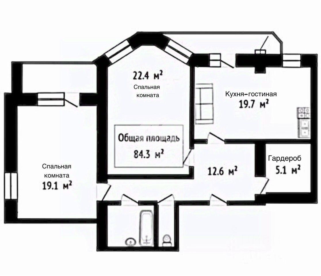 Квартира находится на 11-м этаже 12-этажного кирпичного дома, построенного в 2006 году. Общая площадь — 84,3 кв. м, из которых 41,5 кв. м приходится на жилую площадь. Высота потолков — 3 метра, что создаёт ощущение дополнительного простора.