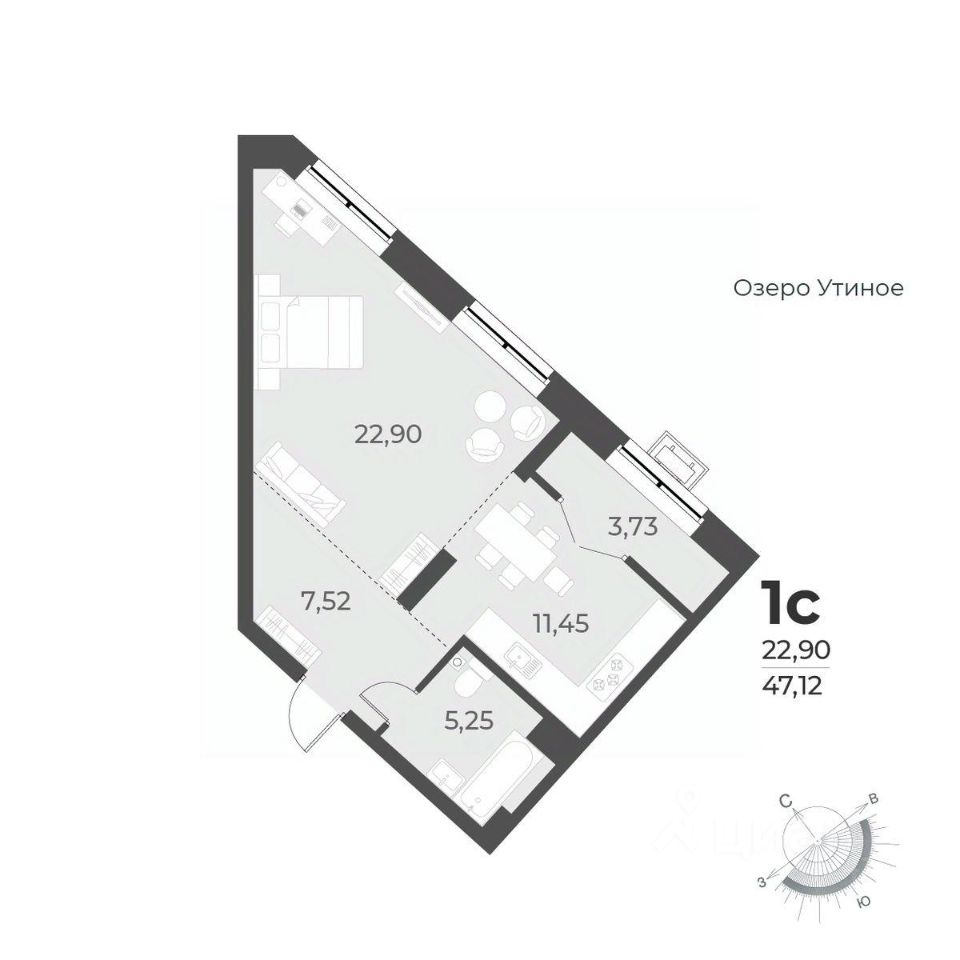 Жилая площадь22,9 м²
