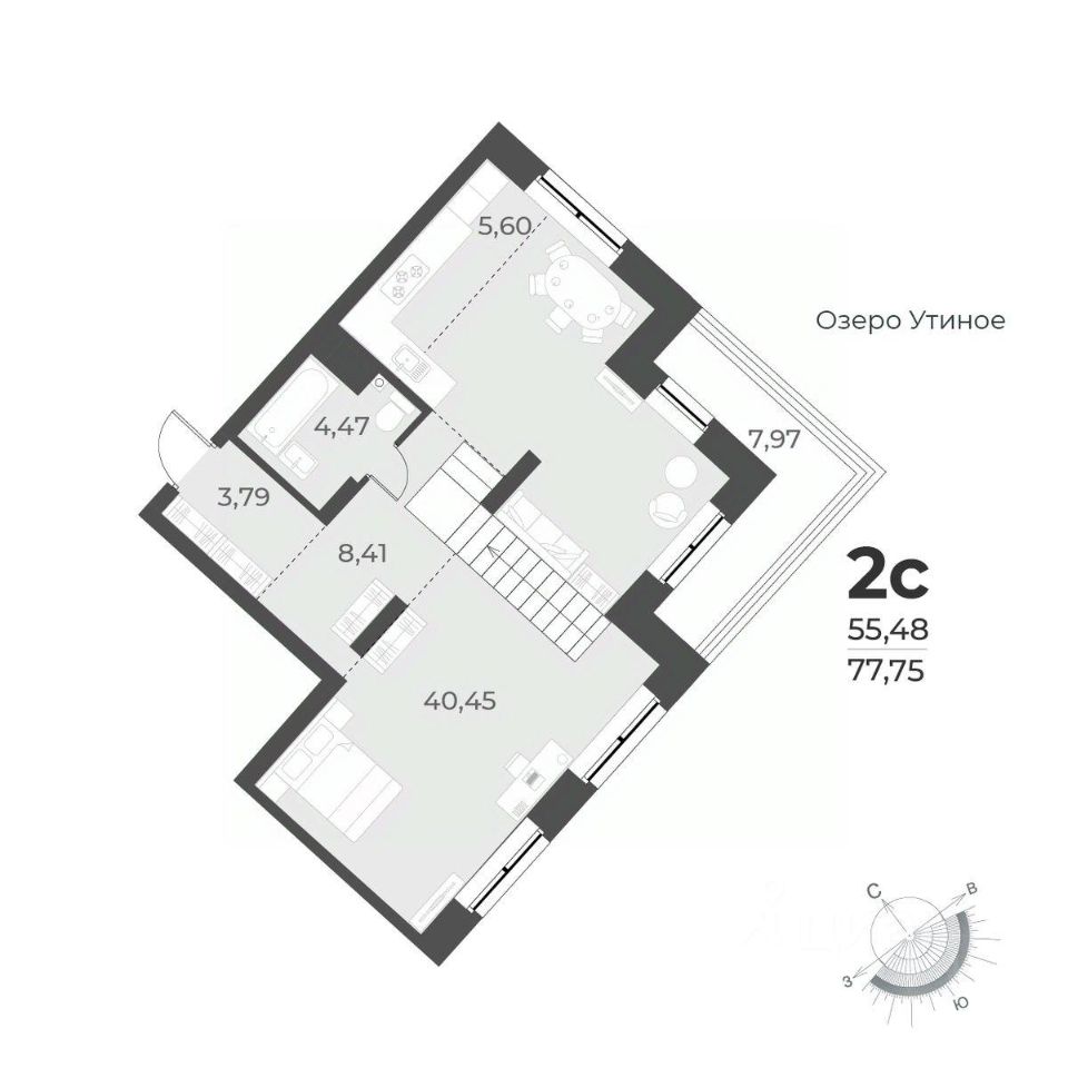 Жилая площадь55,5 м²