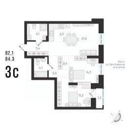 Общая площадь84,3 м²