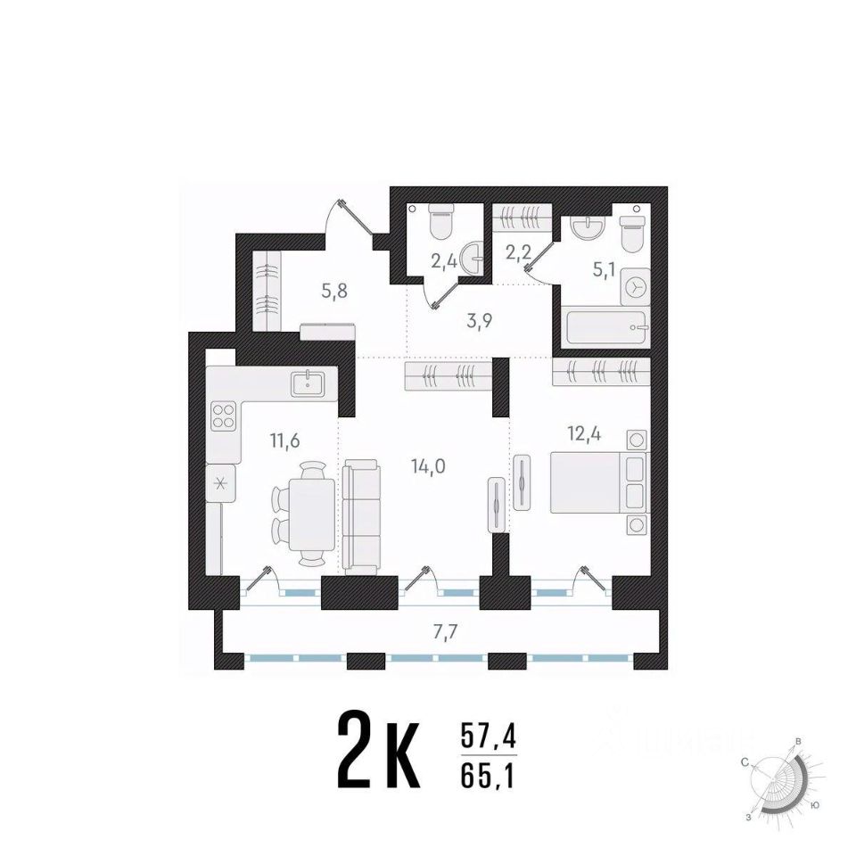 Общая площадь65,1 м²
