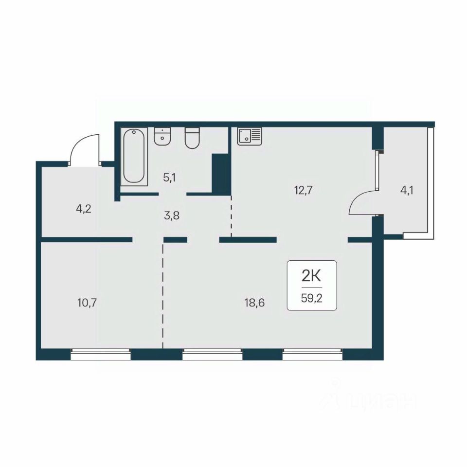 Общая площадь59,2 м²