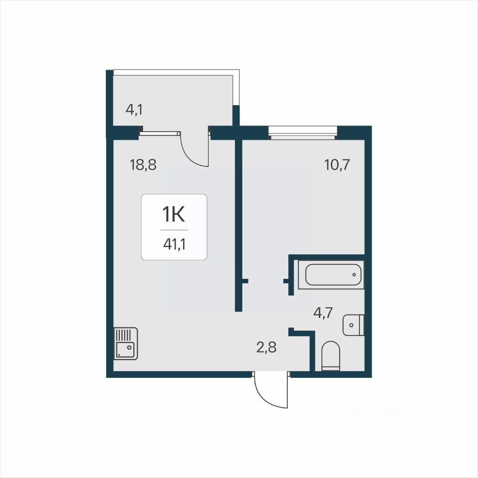 Общая площадь41,1 м²