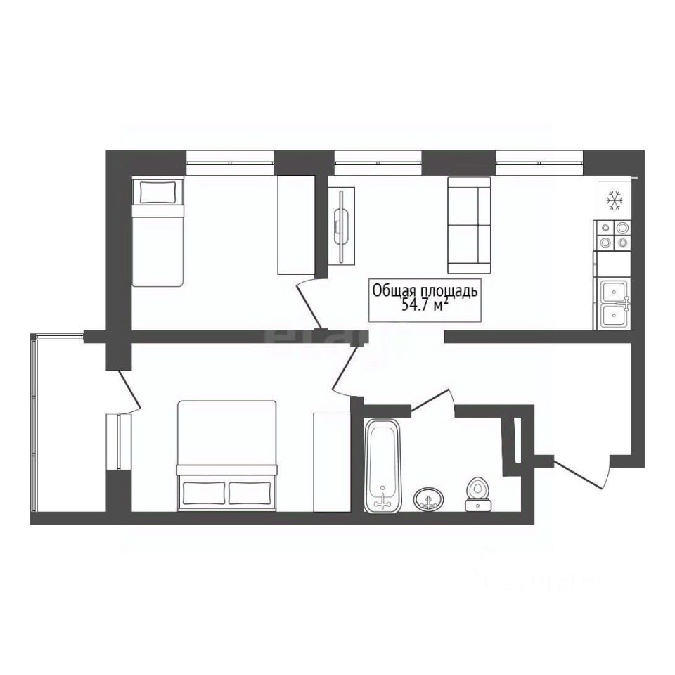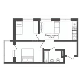 * Общая площадь: 54,7 м² (функциональная планировка без лишних метров).