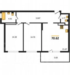 3-комн. квартира, 70 м²