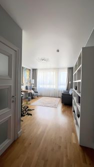 На полу паркетная доска, сантехника, электрика и мебель - премиум качества.