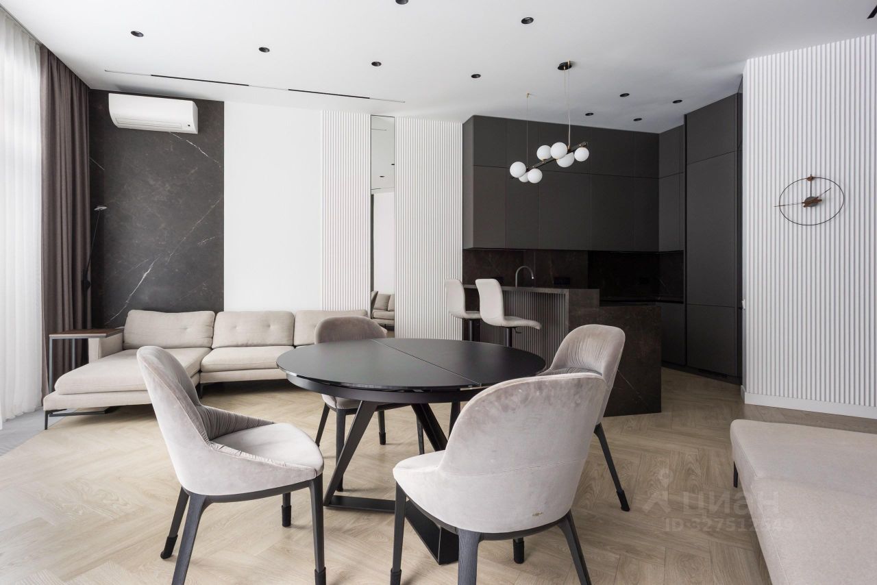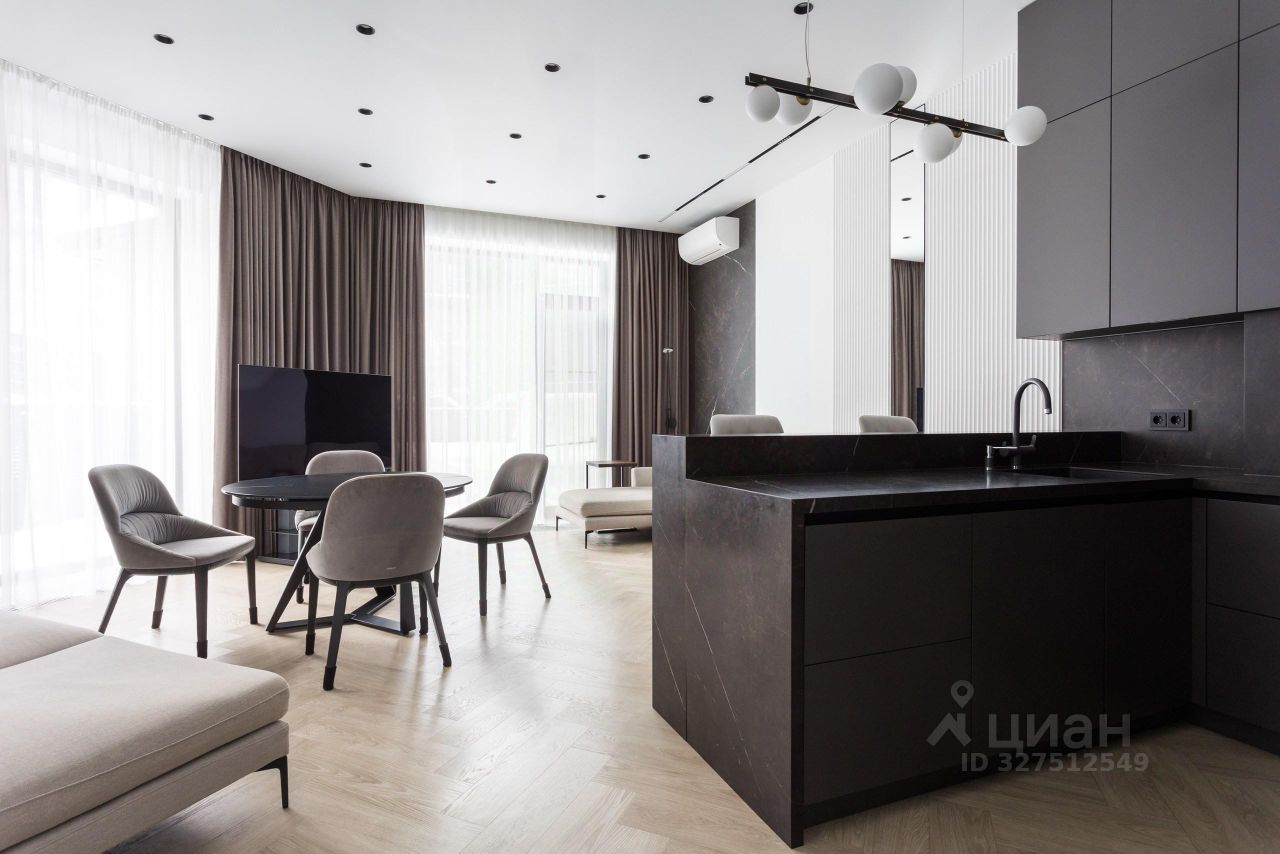 Квартира полностью меблирована: стильная и элегантная мебель под заказ из Италии останется при продаже.