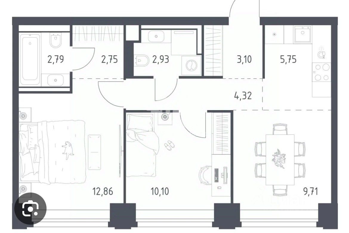 Расположение квартиры на углу дома обеспечивает отличные виды из окон и достаточное количество естественного света. Наличие лоджии добавляет дополнительное пространство для отдыха.