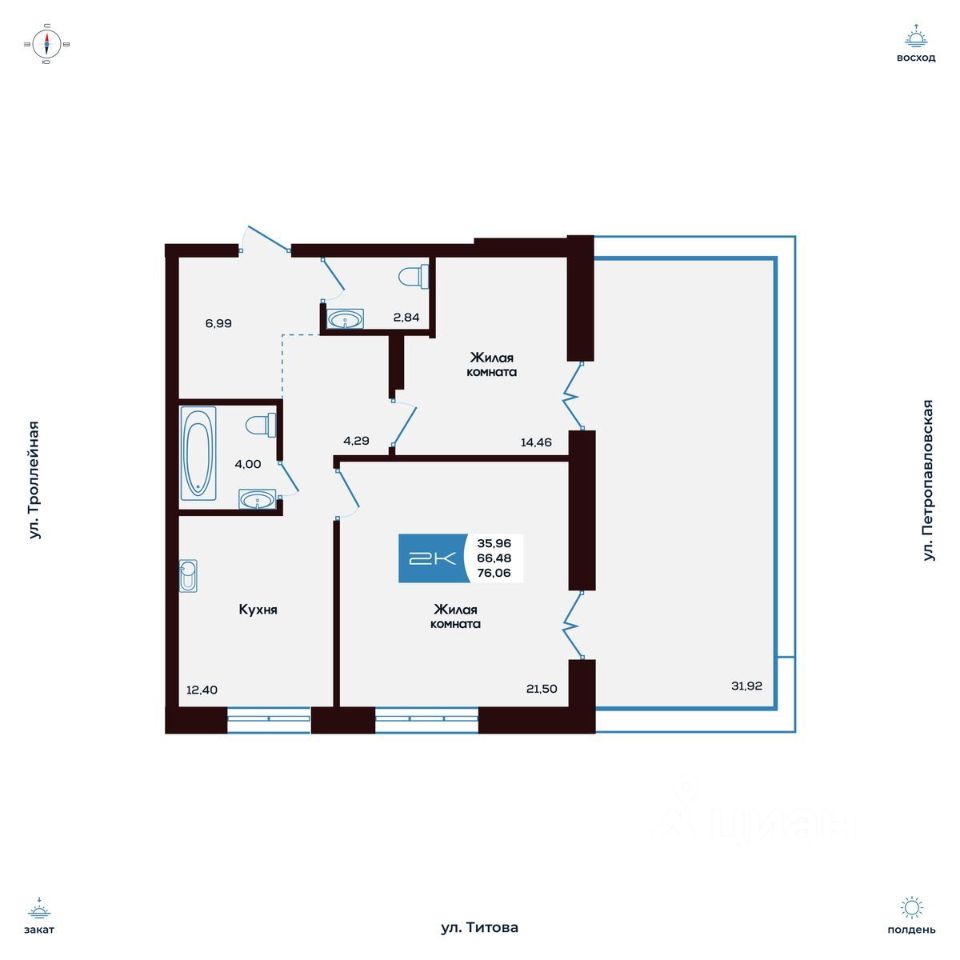Продаётся 2-комнатная квартира в строящемся доме (Дом 1), срок сдачи: I-кв. 2026, общей площадью 76.06 кв.м., на 2 этаже. Новые жилые дома от компании "SKY GROUP" расположены в Ленинском районе Новосибирска на ул. Титова.
