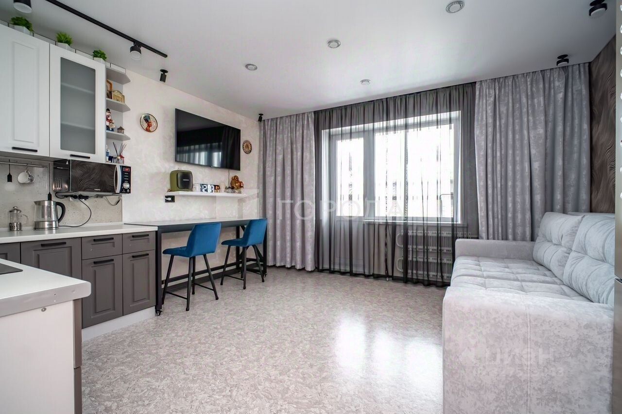 Современный дизайн: стильная мебель, функциональная кухня и комфортная зона отдыха.