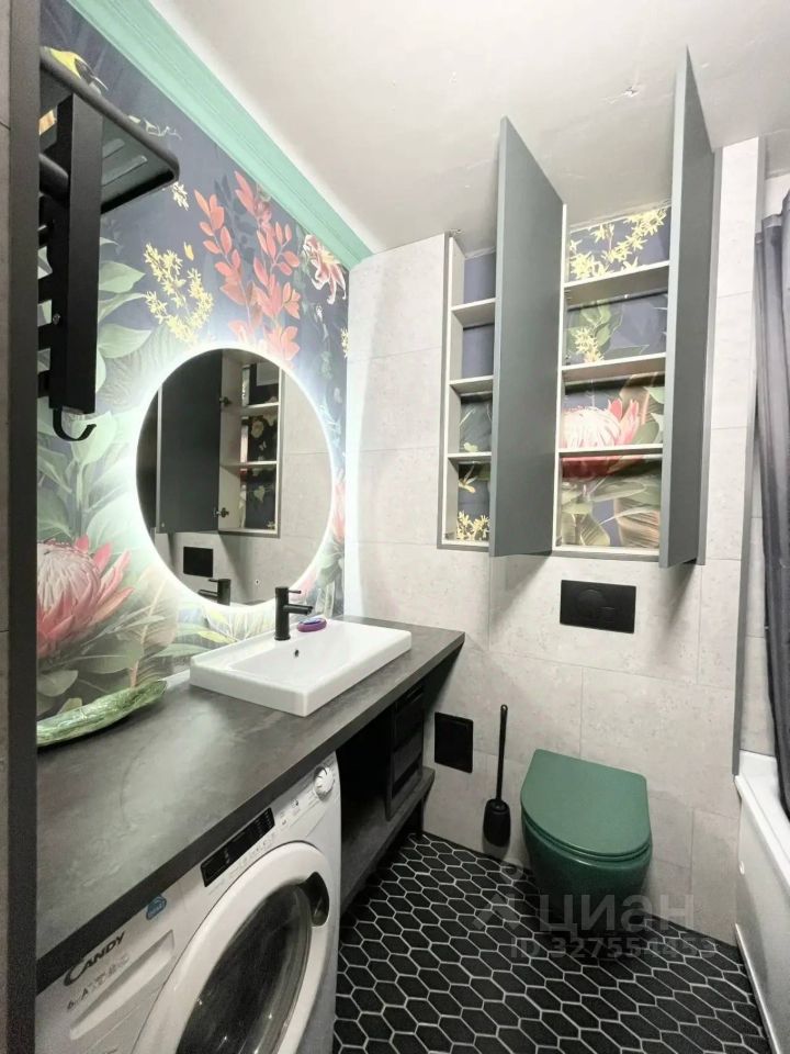 Квартира выполнена в дизайнерском стиле, выполненном с использованием качественных материалов и современного оборудования. Санузел совмещённый, что является удобным решением для экономии пространства. Остаётся все мебель и техника.
