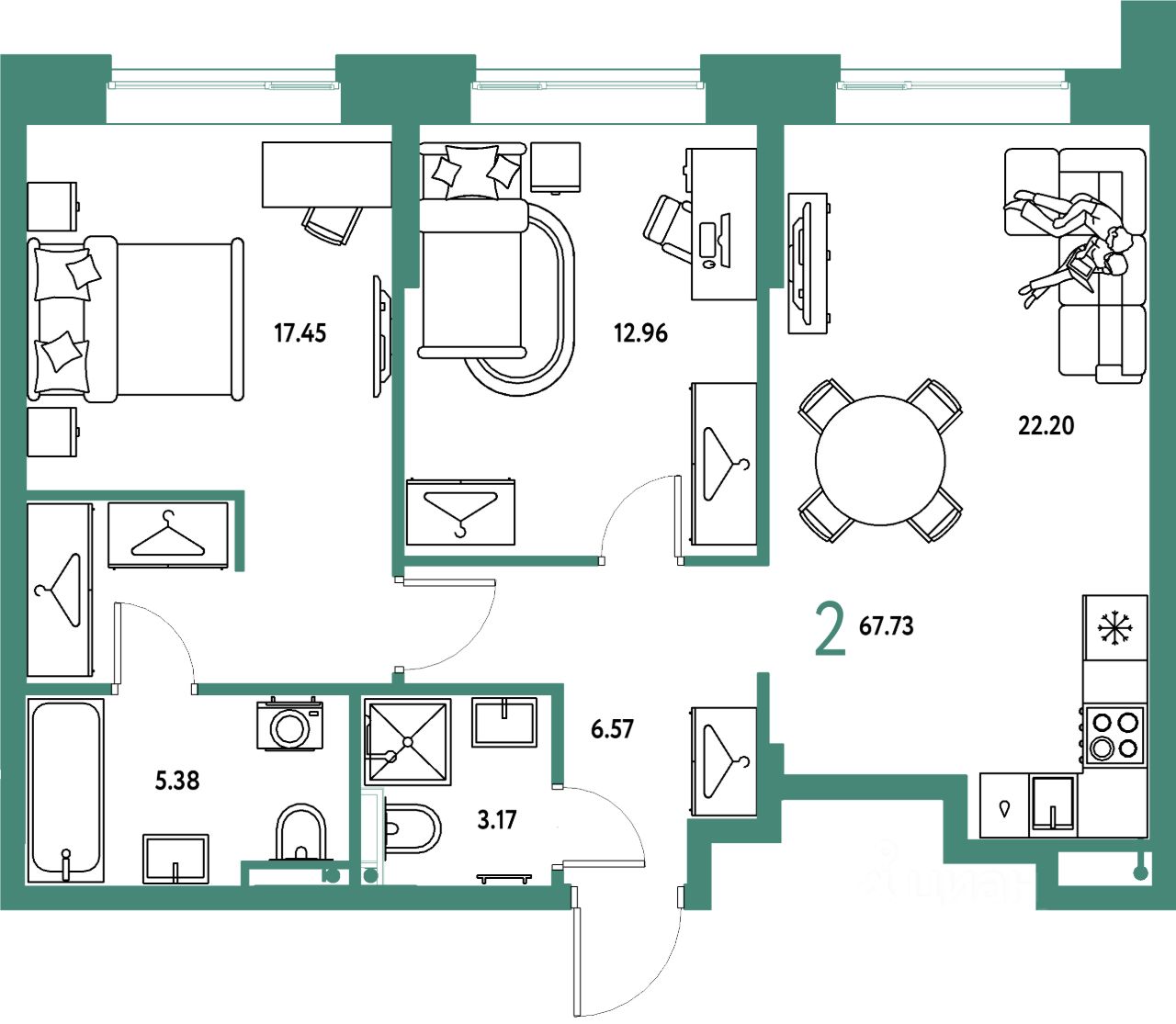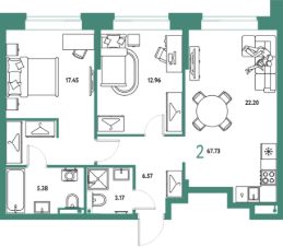 Продаётся 2-комнатная квартира в строящемся доме (Дом 2), срок сдачи: IV-кв. 2027, общей площадью 67.73 кв.м., на 2 этаже. "Страна. Тополёвая" - органично вписанный в городскую среду дом-квартал переменной этажности с акцентной башней доминантой. Мы открываем новую главу истории города, создавая пространство, в котором комфортно жить, работать и строить счастливое будущее.