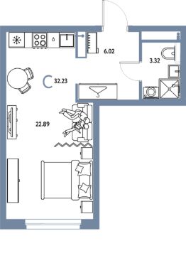 Продаётся студия в строящемся доме (Дом 2), срок сдачи: IV-кв. 2027, общей площадью 32.23 кв.м., на 9 этаже. "Страна. Тополёвая" - органично вписанный в городскую среду дом-квартал переменной этажности с акцентной башней доминантой. Мы открываем новую главу истории города, создавая пространство, в котором комфортно жить, работать и строить счастливое будущее.