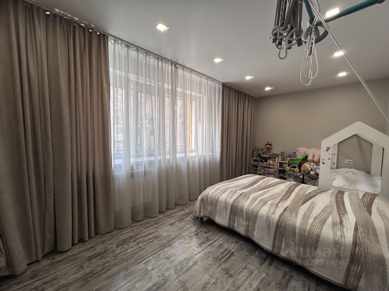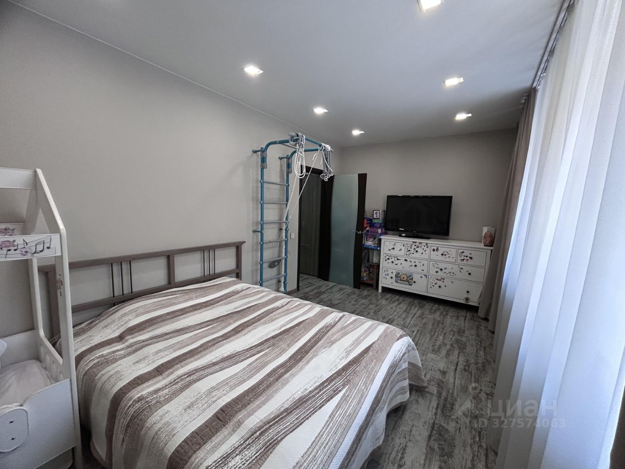 В комнате также продумано освещение (регулировка яркости с пульта),разделение на две зоны.