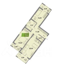 Есть возможность легко сделать 4-к студию, разделив комнату с 2-мя окнами.
