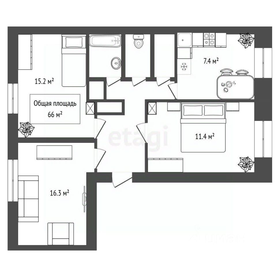 1 собственник, обременений нет.