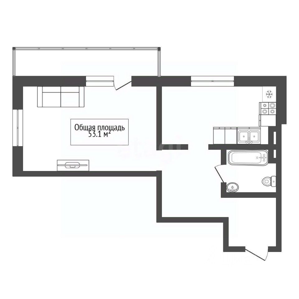 Продаётся просторная однокомнатная квартира 53,1 м (включая застеклённый балкон 6,1 м)