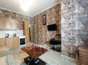 По документам 2-х комнатная студия. Кухня-гостиная 16 м2, спальня 16,4 м2. Просторная утепленная лоджия с видом на благоустроенный двор и детский сад. Огромным плюсом этого объекта является высота потолков - 3,10 м. Полногабаритная квартира. В квартире установлен кондиционер. Квартира очень теплая. Коридор и кухонная зона на полу выложен керамогранит, в санузле кафель.